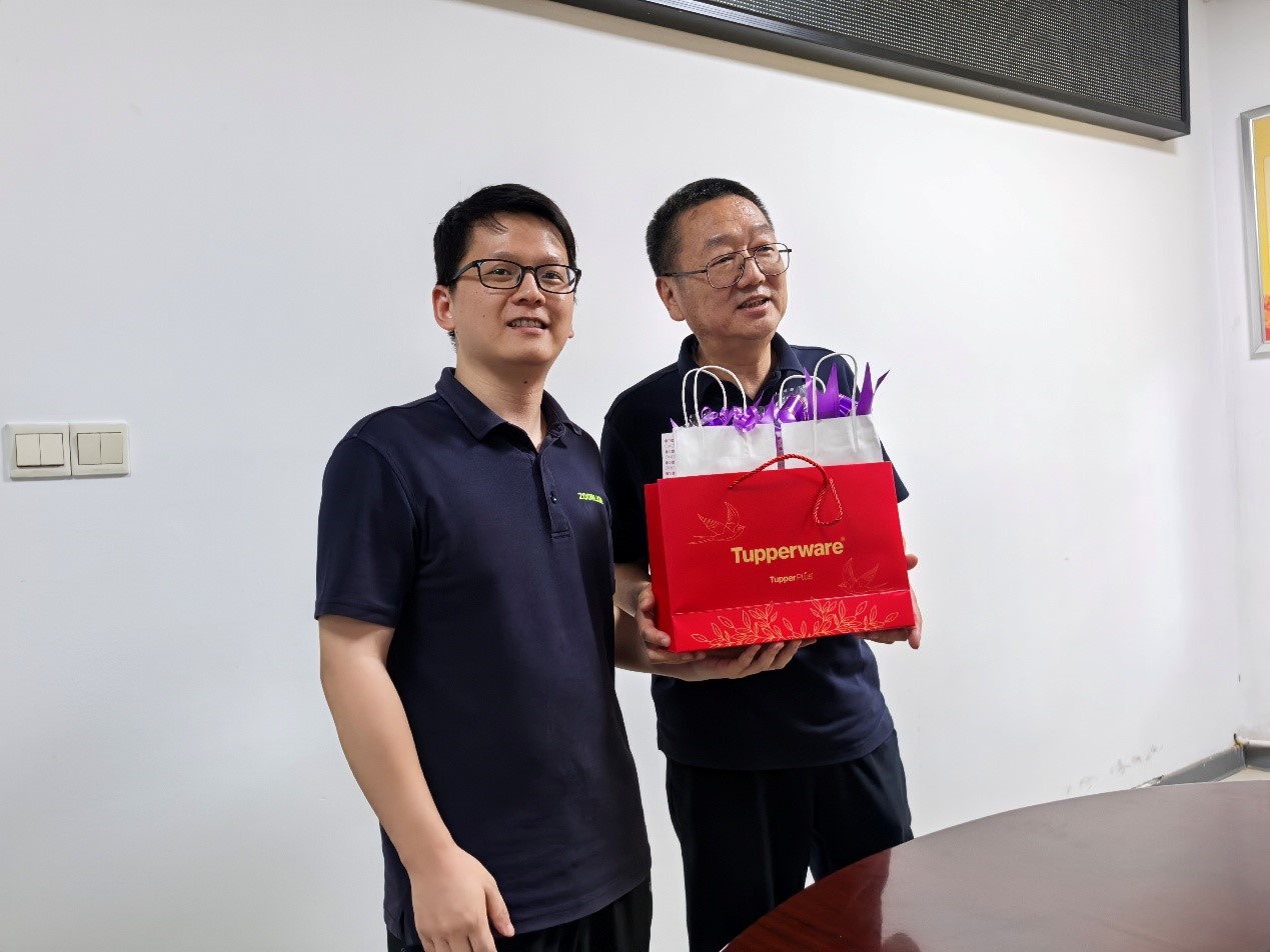 最后,特力液壓技術分工會主席周磊為劉軍同志送上了精心準備的退休紀念品 ——一對滿載公司與同事之前溫情的保溫杯,并與劉軍同志合影留念,將這一溫馨時刻永久定格。
